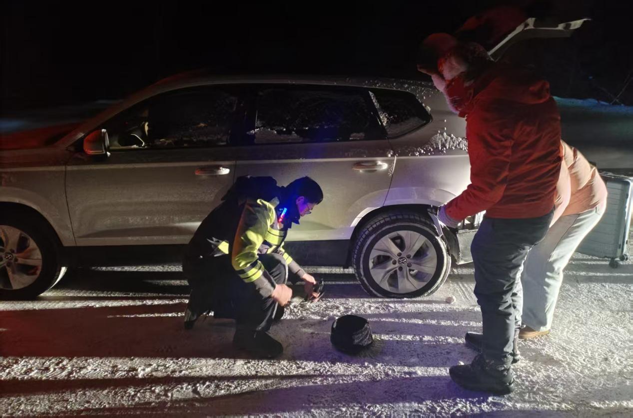 呼瑪公安民警化身“換胎俠” 專業(yè)救援獲群眾點(diǎn)贊