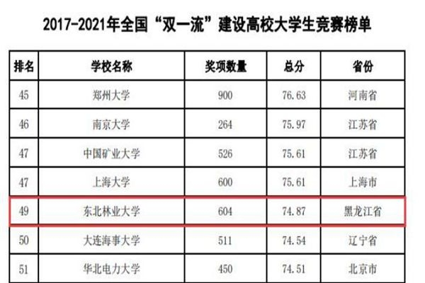 東北林業(yè)大學(xué)連續(xù)四年蟬聯(lián)全國(guó)農(nóng)林類本科院校大學(xué)生競(jìng)賽排行榜榜首