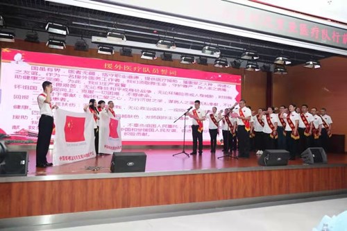 全體隊(duì)員面向隊(duì)旗進(jìn)行莊嚴(yán)宣誓,鄭重承諾將牢記援外醫(yī)療光榮使命,不辜負(fù)祖國(guó)人民重托,發(fā)揚(yáng)“不畏艱苦、甘于奉獻(xiàn)、救死扶傷、大愛(ài)無(wú)疆”的中國(guó)醫(yī)療隊(duì)精神,為增進(jìn)中國(guó)和受援國(guó)人民友誼、促進(jìn)世界和平做出積極貢獻(xiàn)。