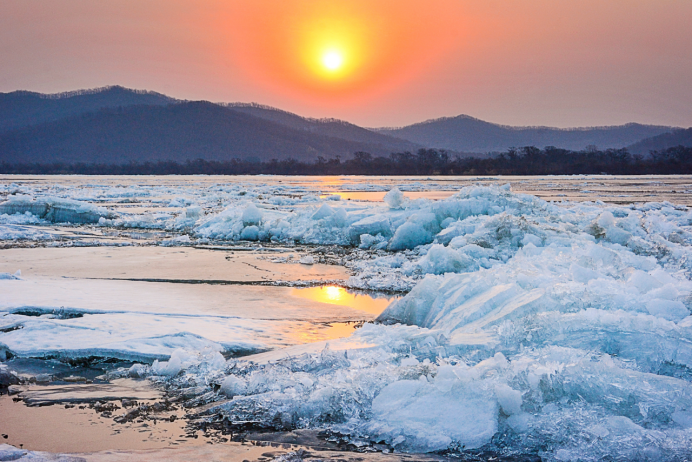 在烏蘇里江的源頭虎頭欣賞開江壯景,別有一番風(fēng)味??傻巧蟻辛⒃诮系臇|方第一塔,遠(yuǎn)眺俄羅斯對(duì)岸,居高而下,欣賞烏蘇里江冰層炸裂、冰排涌動(dòng)的全景,聆聽冰排漂流撞擊發(fā)出的陣陣聲響。