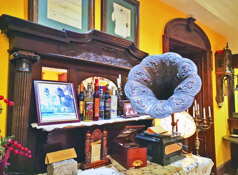 走進餐廳內,走廓里、過道處、墻壁上……到處是“冰城記憶”:有民國時期哈爾濱餐飲商號老發(fā)票、上世紀20至40年代哈爾濱老地圖、中央大街輔街原版老建筑圖紙;清末和民國時期中西菜譜、民國時期哈爾濱俄文酒標、哈爾濱老洋行食材發(fā)票;俄式老茶炊和中東鐵路鑄鐵爐門、西餐老餐具、最早傳入中國的現(xiàn)代煤氣爐灶、木質冰箱等……