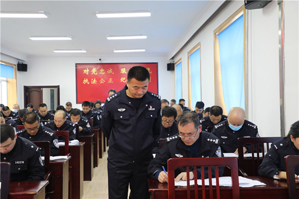 測試采取現(xiàn)場閉卷答題的方式進行,分局政委全程監(jiān)考??紙鲋刃蚓?、考風(fēng)嚴(yán)謹(jǐn),參考人員嚴(yán)格遵守考試紀(jì)律,細致審題、認真作答,均在規(guī)定時間內(nèi)完成考試。