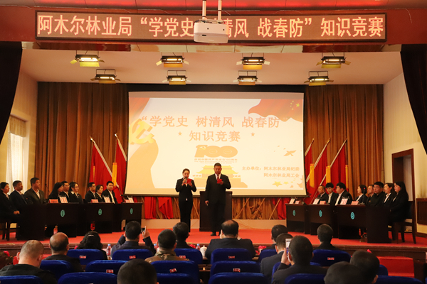 阿木爾林業(yè)局舉辦舉辦“學(xué)黨史、樹清風(fēng)、戰(zhàn)春防”知識競賽現(xiàn)場。