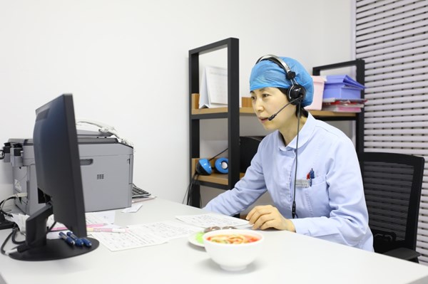 王磊副主任(左一)正在與產(chǎn)婦溝通整體康復(fù)治療計劃