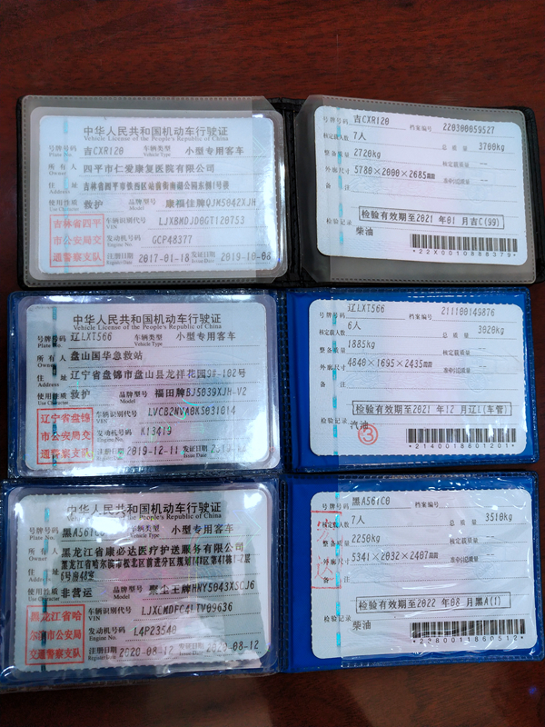 在南崗區(qū)郵政街與遼陽(yáng)街交口附近,一輛遼LLN008牌照和一輛遼CG358U牌照的外觀類似急救車的車輛停放在此。聯(lián)合檢查組上前進(jìn)行檢查后發(fā)現(xiàn),行駛證上顯示的車輛使用性質(zhì)是“救護(hù)”,工作人員通過(guò)天眼查看得知,這兩輛車隸屬于遼寧盤山國(guó)華急救站。幾分鐘后,路口又經(jīng)過(guò)一輛遼LQJ378的車輛,經(jīng)過(guò)查詢發(fā)現(xiàn)和前兩輛車的使用性質(zhì)和所屬公司都是一樣的。