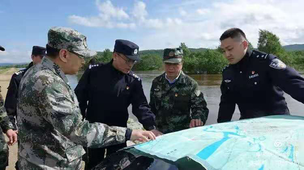 大興安嶺林業(yè)集團公司黨委書記于輝與塔河縣局領(lǐng)導(dǎo)利用無人機查看塔河汛情