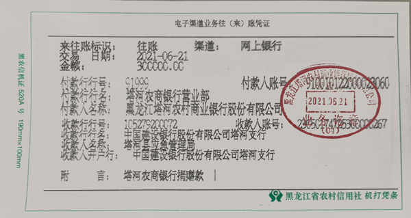 為更好地支持塔河縣應(yīng)對汛情,戰(zhàn)勝洪災(zāi), 6月21日,塔河農(nóng)商銀行在上級銀行的大力支持下,簡化手續(xù),特事特辦,第一時間向塔河縣人民政府捐贈救災(zāi)款項30萬元,用于塔河縣抗洪救災(zāi)工作,奉獻了農(nóng)商銀行廣大干部職工的一份愛心。