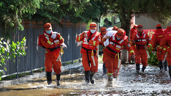 18日凌晨,記者在位于塔河鎮(zhèn)中央大街東端的塔河農(nóng)商銀行機關(guān)辦公樓前看到,漲勢很快的洪水正迅猛地漫過中央大街,向街邊的農(nóng)商銀行機關(guān)大樓、稅務(wù)局辦公樓和電視臺辦公樓等處涌來,而這幾個沿街單位地勢較低,很容易受到洪水的侵襲。為盡量控制洪水水勢,最大限度減少洪水造成的損失,塔河縣防指迅速調(diào)集人力物力,主要領(lǐng)導(dǎo)靠前指揮,廣大救援官兵奮勇爭先,在幾個臨街單位外圍用沙袋圍壩攔堵,并調(diào)動多臺高壓水泵抽水抗?jié)常o幾個單位的救援提供了極大地助力,也為其自救創(chuàng)造了更多的時機。