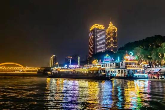 夜幕下的松花江波光滟瀲,江風(fēng)輕撫人清爽,八條經(jīng)過亮化的游船航行在松花江上,穿行在哈爾濱兩岸的燈火輝煌中,成為夜幕下一道別致的風(fēng)景線。每晚18時(shí)30分至22時(shí),共有4條旅游線路可選擇,途經(jīng)防洪紀(jì)念塔、鐵路江上俱樂部、松花江鐵路觀光廊道、九站公園、公路大橋、群力音樂公園等哈爾濱網(wǎng)紅打卡地,是打開“夜幕下的哈爾濱”的最好方式之一。