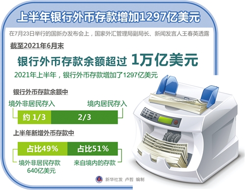 近日,國家外匯管理局披露的數(shù)據(jù)顯示,今年上半年,我國銀行的外幣存款不斷累積,4月份,外幣存款突破了1萬億美元大關(guān)。如何看待這一現(xiàn)象?