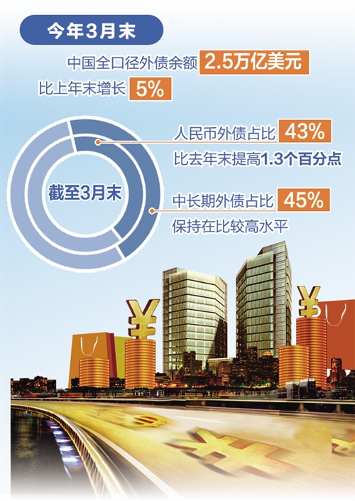 值得注意的是,外債2.5萬億美元的規(guī)模會不會比較高,風(fēng)險會不會比較大?對此,王春英表示,從一些宏觀指標來看,中國當(dāng)前的外債不論是幣種結(jié)構(gòu)還是期限結(jié)構(gòu)都在優(yōu)化,總體的償債能力比較強。截至3月末,人民幣外債占比43%,比去年末提高了1.3個百分點。中長期的外債占比是45%,保持在比較高的水平。從外債的安全性指標來看,截至去年末,外債負債率、償債率、債務(wù)率都在國際安全線以內(nèi),而且都低于發(fā)達國家和新興市場國家的整體水平。