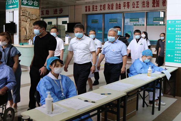 郭宏偉在走訪四所附屬醫(yī)院后強(qiáng)調(diào),黨政領(lǐng)導(dǎo)班子和全院職工要高度重視、高度負(fù)責(zé)地把疫情防控工作作為目前最重要的一項(xiàng)工作,嚴(yán)把疫情防控關(guān),絕不松懈。一要提高站位,繃緊防控之弦不松懈。堅(jiān)決克服麻痹思想、厭戰(zhàn)情緒、僥幸心理、松勁心態(tài),慎終如始抓好常態(tài)化疫情防控,確保醫(yī)院患者和職工的生命安全和身體健康。二要緊盯關(guān)鍵環(huán)節(jié)、壓實(shí)防控責(zé)任不打折扣,進(jìn)一步地落細(xì)落實(shí)疫情防控工作各項(xiàng)措施。要強(qiáng)化醫(yī)療管理,嚴(yán)格落實(shí)首診負(fù)責(zé)制,認(rèn)真落實(shí)預(yù)檢分診制度,加強(qiáng)病房的封閉式管理,堅(jiān)決杜絕院內(nèi)感染發(fā)生。三要強(qiáng)化責(zé)任擔(dān)當(dāng)不懈怠。院領(lǐng)導(dǎo)要擔(dān)責(zé)負(fù)重,靠前指揮,廣大黨員干部、中層干部要發(fā)揮模范帶頭作用,全院職工要增強(qiáng)責(zé)任感和使命感,團(tuán)結(jié)一致,齊心協(xié)力,誓要守住疫情防控第一道關(guān)口,確保陣地不失。
