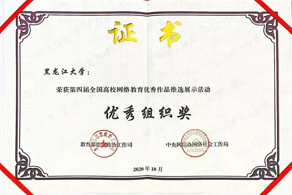 黑龍江大學一直高度重視網(wǎng)絡思政教育,曾獲全國大學生網(wǎng)絡文化節(jié)優(yōu)秀組織獎、全國大學生網(wǎng)絡文化節(jié)和全國高校網(wǎng)絡教育優(yōu)秀作品推選活動一等獎、二等獎等多項榮譽。作為黑龍江省高校網(wǎng)絡思政中心的依托建設高校,黑龍江大學承辦了3屆黑龍江省大學生網(wǎng)絡文化節(jié)和黑龍江省高校網(wǎng)絡教育優(yōu)秀作品推選展示活動,累計評選5000余件黑龍江省高校優(yōu)秀師生網(wǎng)絡文化作品,并推選出1882件黑龍江省優(yōu)秀高校師生作品參加全國評選。今后,黑龍江大學將繼續(xù)強化思想引領,聚焦立德樹人,依托黑龍江省高校網(wǎng)絡思政中心,引領全省高校構(gòu)建新時代高等教育網(wǎng)絡思想政治工作體系。