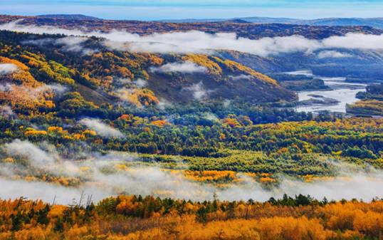 黑龍江經(jīng)濟網(wǎng)訊(記者魏?。┖邶埥那锾?,是大自然饋贈的最華麗的狂歡,那濃得化不開的五花山色,明艷動人,一望無際,似列維坦筆下寫實的秋彩:各類喬木正由綠向金黃漸變,當中夾雜著火紅的楓葉、蒼翠的松枝、銀白的瀑布……比起夏日滿眼的綠色,更多了一份五彩繽紛的浪漫,一條條通向天際線的公路,仿佛可以直達天界。