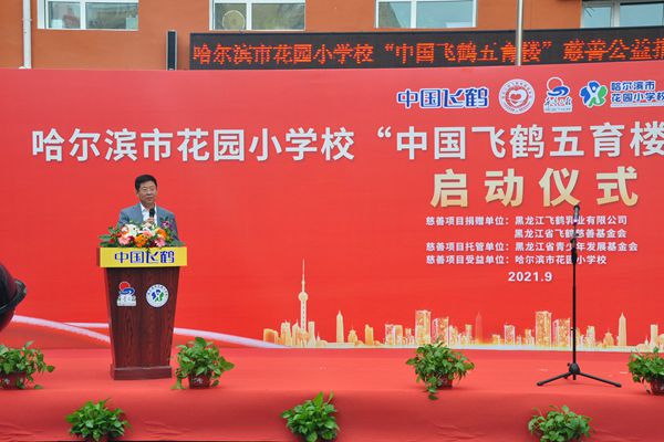 飛鶴乳業(yè)黨委書記、飛鶴慈善基金會(huì)理事長(zhǎng)朱天龍在啟動(dòng)儀式上說,在中秋國慶即將到來之際,我們滿懷喜悅的心情,在百年名校哈爾濱市花園小學(xué)校舉行“中國飛鶴五育樓”公益慈善助教項(xiàng)目啟動(dòng)儀式,這是飛鶴乳業(yè)履行社會(huì)責(zé)任、情系教育事業(yè)的又一項(xiàng)助教工程。在黑龍江省貫徹落實(shí)黨中央“雙減”政策,深入推進(jìn)五育并舉,促進(jìn)學(xué)生德智體美勞全面發(fā)展的重要時(shí)期。飛鶴向哈爾濱市花園小學(xué)捐贈(zèng)625萬元,用于花園小學(xué)“五育樓”項(xiàng)目改造,這是一項(xiàng)利在當(dāng)代,功在千秋的公益慈善助教項(xiàng)目,旨在更好地優(yōu)化我省基礎(chǔ)教育教師學(xué)習(xí)培訓(xùn)環(huán)境,為花園小學(xué)教學(xué)提供更好的辦學(xué)條件,也是助力黑龍江省基礎(chǔ)教育的改革。省教育廳副廳長(zhǎng)姜同河、團(tuán)省委副書記張濤對(duì)飛鶴乳業(yè)的慈善助教善舉給予充分的肯定和贊許。花園小學(xué)校長(zhǎng)曹永鳴代表學(xué)校的孩子們向飛鶴乳業(yè)的慈善捐助表達(dá)深深的謝意!