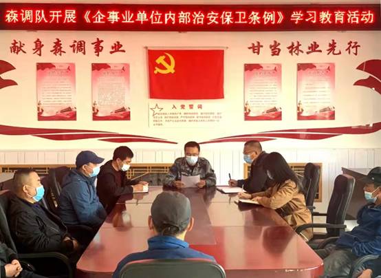 活動中,森林調(diào)查設計大隊首先成立了安全檢查工作組,明確檢查范圍和內(nèi)容,并由主管安全保衛(wèi)負責人領學了《企事業(yè)單位內(nèi)部治安保衛(wèi)條例》,要求全隊干部職工進一步提高政治站位,高度重視安全工作,嚴格落實安全責任制,認真執(zhí)行值班值守制度,及時做好安全信息登記和對上報告工作,繼續(xù)加強對進出單位人員的疫情監(jiān)控,著力保障企業(yè)內(nèi)部穩(wěn)定。