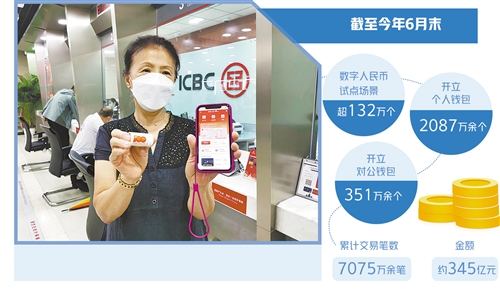 數(shù)據(jù)顯示,截至9月10日,工行北京分行試點的數(shù)字人民幣應(yīng)用場景達(dá)8萬多個,集中在與社會民生緊密相關(guān)的交通出行、餐飲住宿、購物消費(fèi)、旅游觀光、醫(yī)療衛(wèi)生、通信服務(wù)、票務(wù)娛樂7大類場景。中國人民銀行近期發(fā)布的《中國數(shù)字人民幣的研發(fā)進(jìn)展》白皮書顯示,截至今年6月末,數(shù)字人民幣試點場景已超132萬個,開立個人錢包2087萬余個、對公錢包351萬余個,累計交易筆數(shù)7075萬余筆、金額約345億元。