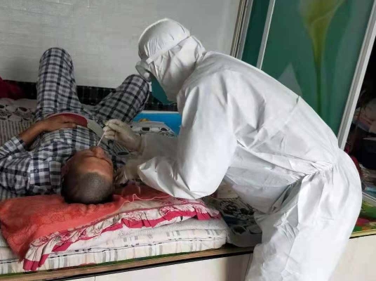 分到黑山鎮(zhèn)核酸采集的21名隊員,則由張艷護(hù)士長帶隊,當(dāng)?shù)匾褯]有20人以上接待能力的賓館,支援隊伍在鎮(zhèn)衛(wèi)生院的病房臨時休整4個小時后,集體出發(fā)到黑山鎮(zhèn)下設(shè)的50個村屯進(jìn)行核酸采集工作。