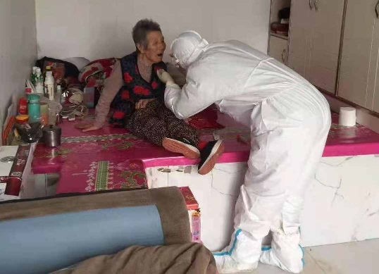 巴彥縣核酸采集現(xiàn)場還活躍著省醫(yī)院健康管理中心疾病康復(fù)部工作人員的身影,護(hù)士長李曉莉率先垂范,發(fā)揮黨員先鋒模范作用,帶隊“出征”;隊員徐賢紅克服低血鉀、全身無力等困難,積極參戰(zhàn);隊員林虹則空腹血糖達(dá)10mmol/L,帶著胰島素請求“參戰(zhàn)”。三人早晨7點開始核酸采集工作,深入到各個鄉(xiāng)鎮(zhèn)村屯,更將核酸采集工作延伸到老鄉(xiāng)家中,為臥床及行動不便的人進(jìn)行核酸采集工作,中飯和晚飯都是快速的吃一口盒飯或者泡面就地解決,然后又迅速投入到工作中。據(jù)了解,疾病康復(fù)部人均年齡都在50歲左右,此次抗疫所有的同事都克服自身重重困難,為完成使命,勇往直前,盡顯龍醫(yī)人的本色。