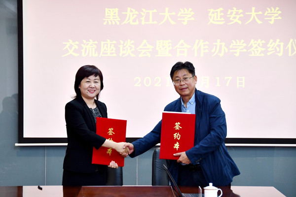 黑龍江經(jīng)濟網(wǎng)訊(全媒體見習(xí)記者 董廣碩 商祺)近日,黑龍江大學(xué)與延安大學(xué)在延安大學(xué)新城校區(qū)簽訂合作辦學(xué)框架協(xié)議。黑龍江大學(xué)黨委書記王永清、副校長于文秀,延安大學(xué)黨委書記張金鎖、副校長呂達、副校長譚虎娃等出席會議。