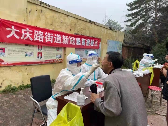 感人的事跡還有很多很多,醫(yī)院二十六病區(qū)護士孫立會,是一名今年年底就要退休的高年資護士,一直堅守在臨床一線,當聽到需要下社區(qū)支援采集核酸,積極報名主動提出上夜班崗,在晚上打車前往社區(qū)替換白班同事時,出租車師傅聽說是去給市民采集核酸,下車時堅決拒收車費;護理部護士長王爽也將年邁生病的母親托付給別人照看,全身心的投入到了核酸采集工作中;由于人手緊張,醫(yī)院行政后勤工作人員也都積極加入到了核酸采集工作當中,短短幾天共派出近50名有醫(yī)護資質(zhì)的機關(guān)干部前往社區(qū)為群眾采集核酸。