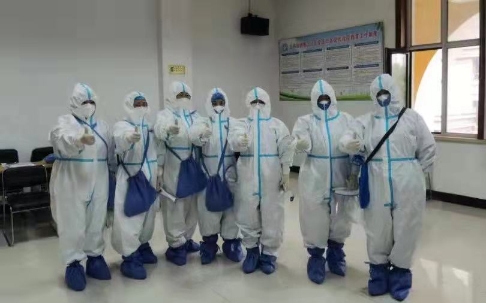 自2020年1月感染內(nèi)科全體醫(yī)護(hù)承擔(dān)起發(fā)熱門診此項(xiàng)艱巨任務(wù),一樓設(shè)立為發(fā)熱門診留觀室,二樓為核酸未出結(jié)果者緩沖病房,三樓、四樓為核酸陰性但尚未解除隔離的留觀病房。此次根據(jù)疫情防控要求,在原本樓層多,醫(yī)護(hù)工作“戰(zhàn)線”長(zhǎng)的情況下,還特別設(shè)立了“巴彥”疫區(qū)專屬樓層。來自風(fēng)險(xiǎn)區(qū)患者就診時(shí),在隔離區(qū)的一名醫(yī)生和一名護(hù)士每個(gè)班次經(jīng)常工作6-8小時(shí),樓上樓下的反復(fù)奔走,裹著密不透氣的防護(hù)服,汗水濕透衣背。長(zhǎng)時(shí)間的不能喝水吃飯如廁,挑戰(zhàn)人體生理忍耐極限,但從未有人叫苦委屈。白班的同志在結(jié)束日間工作后,為了解決科室人員少,且工作量大的情況,主動(dòng)留下加班到很晚,而第二天還要支援社區(qū)全員核酸采集任務(wù)。
