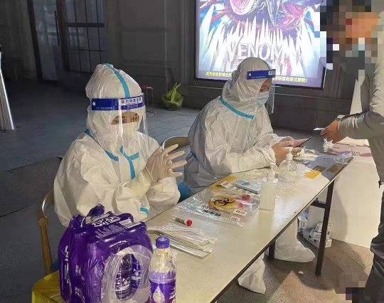 在做好發(fā)熱門診本職工作的同時(shí),護(hù)理團(tuán)隊(duì)還全力支援社區(qū)全員采集核酸任務(wù)。有的同志在忙碌了一夜夜班后,連家都沒回,又立刻投身到核酸采樣任務(wù)中。時(shí)間緊任務(wù)重,經(jīng)常早上4、5點(diǎn)鐘就要出發(fā)集合去采樣地點(diǎn),直到晚10點(diǎn)左右才結(jié)束工作。采樣地點(diǎn)多在室外,氣溫低,更是放棄了吃飯休息的時(shí)間,爭(zhēng)分奪秒地為一個(gè)又一個(gè)居民采樣。長(zhǎng)達(dá)十幾個(gè)小時(shí)的高壓工作,導(dǎo)致肩頸、手腕損傷,但就算這樣,也從未有人下“戰(zhàn)場(chǎng)”。
