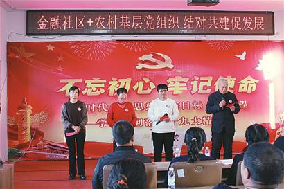 結(jié)對(duì)的村、社區(qū)黨組織充分挖掘特色,通過(guò)互上黨課、共同開(kāi)展主題黨日活動(dòng),聯(lián)辦“慶七一”、迎國(guó)慶文藝演出等多種形式不斷豐富黨建載體,提高組織生活實(shí)效。前進(jìn)村、高灘村等黨支部與社區(qū)黨組織聯(lián)合開(kāi)展“學(xué)黨史、強(qiáng)信仰、以賽促學(xué)”黨史知識(shí)競(jìng)賽活動(dòng)。金融社區(qū)黨總支聯(lián)合結(jié)對(duì)村黨支部開(kāi)展“致敬崢嶸歲月、唱響紅色贊歌”主題黨日活動(dòng),城鄉(xiāng)黨員共同聽(tīng)黨史故事、溫入黨誓詞、唱紅色經(jīng)典等。截至目前,結(jié)對(duì)村、社區(qū)黨組織互上黨課14次,共同開(kāi)展特色主題黨日活動(dòng)20余次。