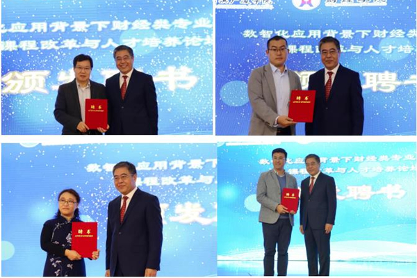 陳西峰為山東財經大學會計學院院長王愛國教授、華僑大學工商管理學院博士生導師楊洪濤教授、哈爾濱工程大學經濟管理學院博士生導師楊忠海教授頒發(fā)客座教授聘書,為財智未來(北京)教育科技有限公司總監(jiān)聶鑫、中聯集團教育科技有限公司產教融合事業(yè)部總監(jiān)侯劉成頒發(fā)企業(yè)導師聘書。