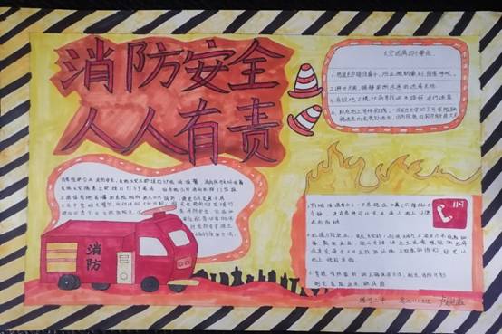 本次活動,同學(xué)們認(rèn)真搜集消防安全相關(guān)資料,精心設(shè)計(jì)版面,生動活潑的內(nèi)容,色彩豐富、圖文并茂、書寫美觀,給人賞心悅目的感覺。