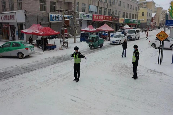 為了緩解降雪帶來的交通壓力,呼瑪縣公安交警大隊對縣內(nèi)各條主干道及車輛密集路口和各中小學(xué)校門前,分別加派了警力,上路執(zhí)勤,指揮交通,全力保障居民安全出行。