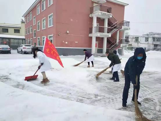 縣衛(wèi)生健康局機(jī)關(guān)黨委在首降大雪后,組織基層黨員干部職工,對院內(nèi)積雪進(jìn)行清除,經(jīng)過一個半小時的努力,院內(nèi)外積雪及時得到了清掃,保證了就醫(yī)群眾的道路安全暢通,也為職工的生活與安全出行帶來便捷。