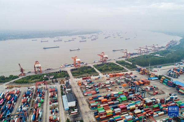 這是10月19日拍攝的武漢陽邏港一期碼頭(無人機照片)。新華社發(fā)(伍志尊攝)