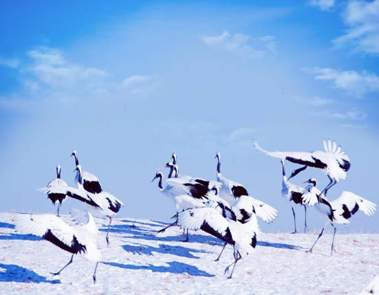 “雪地觀鶴”是黑龍江省獨(dú)有的冰雪旅游項(xiàng)目,在全國眾多的冰雪旅游資源中具有唯一性和獨(dú)特性。黑龍江扎龍國家級(jí)自然保護(hù)區(qū)是以蘆葦沼澤為主的內(nèi)陸濕地水域生態(tài)系統(tǒng)和野生動(dòng)物類型自然保護(hù)區(qū),有著“世界大濕地、中國鶴家鄉(xiāng)”的美譽(yù)。目前,這里棲息繁衍著近500只丹頂鶴,這些人工繁育的丹頂鶴冬季不會(huì)遷往南方,因此“雪地觀鶴”成為世界上獨(dú)一無二的勝景。
