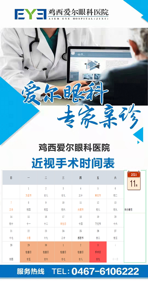 雞西愛爾眼科醫(yī)院近視手術(shù)時(shí)間表: