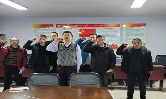 在中國(guó)共產(chǎn)黨入黨誓詞展示墻前,黨員干部們面向黨旗,高舉右手,重溫了入黨誓詞,我志愿加入中國(guó)共產(chǎn)黨,擁護(hù)黨的綱領(lǐng)......隨時(shí)準(zhǔn)備為黨和人民犧牲一切,永不叛黨。回憶入黨過程加固不忘初心、牢記使命,永葆共產(chǎn)黨員政治本色的堅(jiān)定政治信念。