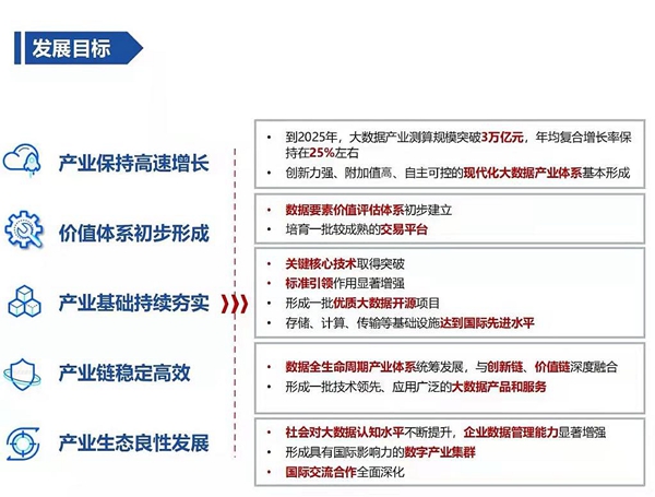 規(guī)劃明確,到2025年,大數(shù)據(jù)產(chǎn)業(yè)測算規(guī)模突破3萬億元。其中特別提出,數(shù)據(jù)要素價值評估體系初步建立;產(chǎn)業(yè)基礎持續(xù)夯實,關鍵核心技術(shù)取得突破;形成一批技術(shù)領先、應用廣泛的大數(shù)據(jù)產(chǎn)品和服務。