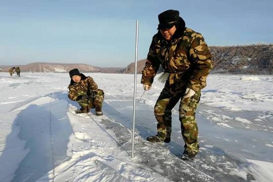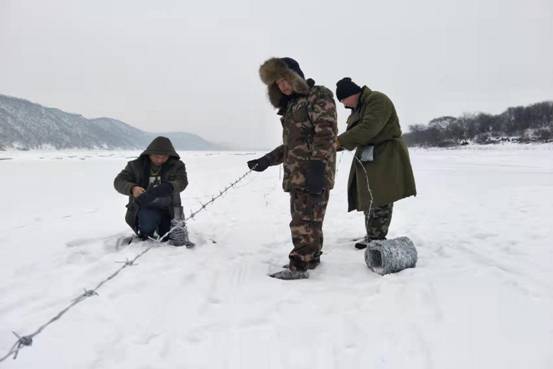 為進(jìn)一步做好防境外疫情輸入工作,最大限度的保護好人民群眾的生命健康安全,當(dāng)?shù)卣疀Q定在界江沿線架設(shè)防疫隔離墻,阻擋境外物種帶入病毒。紅星林場在接到任務(wù)后,迅速組織人力物力投入戰(zhàn)斗。冰封的江面在冬季暗藏危機,看似一平如鏡的冰下有很多封凍時形成的漏斗,白雪覆蓋下的區(qū)域更是潛藏著無數(shù)的冰縫,一腳踏進(jìn)去就會造成嚴(yán)重的扭傷,而在冰面上放線拉網(wǎng)需要每天抬著幾十斤的鐵蒺藜線軸往返十幾里路程,行進(jìn)在冰面路段上一步一滑,加固鐵線時還要時刻小心不被鐵蒺藜劃傷,鉆孔、插樁也要時刻防止產(chǎn)生大面積的冰裂。
