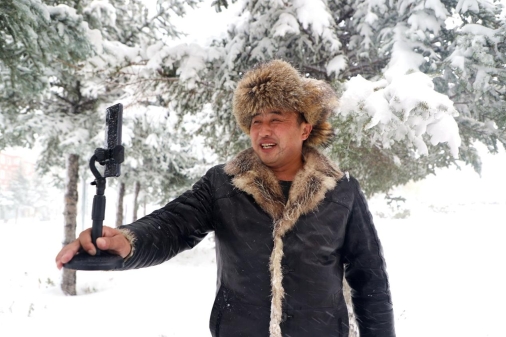 圖為共產(chǎn)黨員、網(wǎng)紅劉老四向粉絲直播雪景(王力攝)