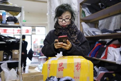 圖為共產(chǎn)黨員、網(wǎng)商孫秀麗正在為客戶發(fā)貨(王力攝)