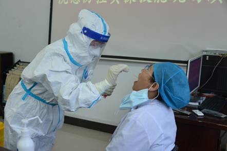 本次演練將歷時(shí)1周,院領(lǐng)導(dǎo)班子成員組成考核組,對各科室醫(yī)務(wù)人員逐一考核。演練共包括七步洗手法步驟、穿脫防護(hù)服流程、氯制劑消殺配制方法、核酸標(biāo)本采集操作流程、“百日平安守護(hù)行動(dòng)”應(yīng)知應(yīng)會五個(gè)環(huán)節(jié)。演練現(xiàn)場,考核組觀摩每名醫(yī)務(wù)人員實(shí)操全過程,現(xiàn)場提問應(yīng)知應(yīng)會、院感防控知識,并進(jìn)行點(diǎn)評、糾正,提高醫(yī)務(wù)人員實(shí)際操作能力,熟練掌握院感防控知識要點(diǎn)。