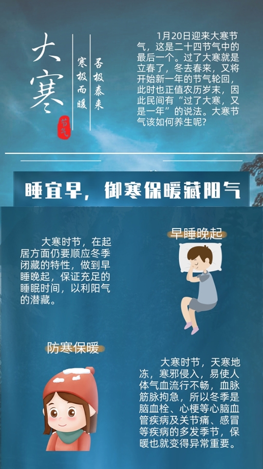 大寒節(jié)氣如何養(yǎng)生?睡宜早、食宜溫、動(dòng)宜慢
