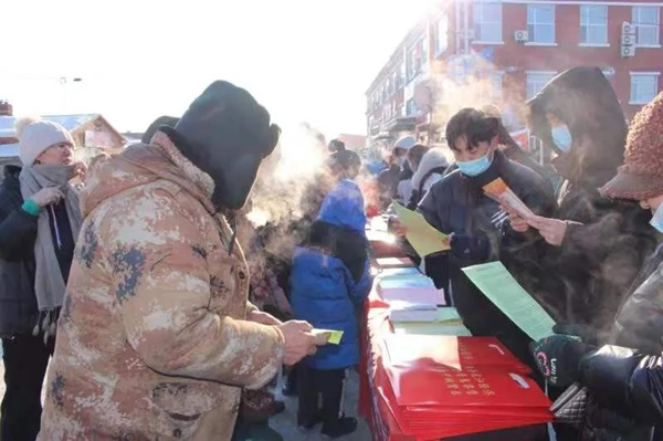 黑龍江經(jīng)濟(jì)網(wǎng)訊( 劉妍 王曉微 記者仉慶華)日前,嘉蔭縣烏云鎮(zhèn)的中心街道上,村民們緊緊環(huán)繞在“除陋習(xí) 樹(shù)新風(fēng)”主題宣傳臺(tái)周?chē)?,參加由嘉蔭縣新時(shí)代文明實(shí)踐中心組織的迎新春綜合宣傳活動(dòng)?;顒?dòng)現(xiàn)場(chǎng),工作人員圍繞黨的十九屆六中全會(huì)精神、鄉(xiāng)風(fēng)文明、疫情防控等內(nèi)容開(kāi)展全方位宣傳,參加活動(dòng)的群眾認(rèn)真聆聽(tīng),時(shí)而交流談?wù)摗r(shí)而低頭深思,現(xiàn)場(chǎng)其樂(lè)融融,一派熱鬧景象。
