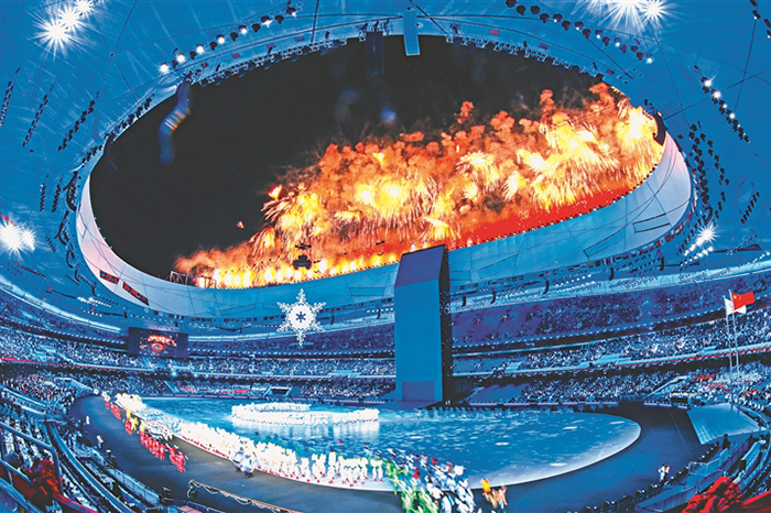 這是第二十四屆冬季奧林匹克運(yùn)動會開幕式主火炬和焰火表演。 新華社記者 蘭紅光攝