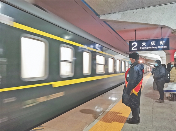 由于節(jié)后返程客流劇增,大慶地區(qū)去往海拉爾的4趟旅客列車(chē)無(wú)法滿足企業(yè)返崗需要,為幫助企業(yè)解決油田職工返崗復(fù)工困難,哈爾濱局集團(tuán)公司全力協(xié)助大慶油田有限責(zé)任公司辦理職工出行事宜,為企業(yè)量身定制了油田職工返崗復(fù)工專列開(kāi)行方案。在春運(yùn)期間運(yùn)力緊張的情況下,專門(mén)調(diào)集10輛空調(diào)車(chē)體,全面進(jìn)行設(shè)備檢修維護(hù)和車(chē)輛消毒作業(yè),滿足石油工人出行需求。負(fù)責(zé)運(yùn)輸組織工作的大慶站為油田職工提供專項(xiàng)聯(lián)絡(luò)、專區(qū)候車(chē)、專人引導(dǎo)服務(wù),及時(shí)辦理團(tuán)體購(gòu)票,增開(kāi)進(jìn)站通道,提前做好候車(chē)區(qū)域通風(fēng)、消毒和保潔工作,配合地方政府嚴(yán)格落實(shí)進(jìn)站掃碼、測(cè)溫等防疫措施,在驗(yàn)票進(jìn)站、安檢、候車(chē)、乘車(chē)等環(huán)節(jié)設(shè)置人員進(jìn)行引導(dǎo)。并利用小喇叭、電子顯示屏、車(chē)站廣播等載體,循環(huán)播放疫情防控措施、登乘列車(chē)注意事項(xiàng),引導(dǎo)務(wù)工人員分散候車(chē)就座。鐵路部門(mén)精心抽調(diào)服務(wù)經(jīng)驗(yàn)豐富的哈爾濱客運(yùn)段北京車(chē)隊(duì)列車(chē)工作人員負(fù)責(zé)乘務(wù)工作,提前做好列車(chē)通風(fēng)消毒和防疫保潔工作,為乘客準(zhǔn)備了一次性醫(yī)用口罩和消毒洗手液,全力營(yíng)造健康安全的出行環(huán)境。