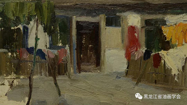 《農(nóng)家小院》 13.5×24cm 紙本油彩 1963