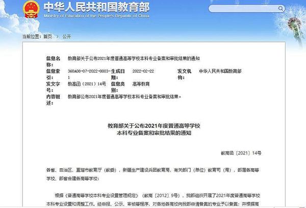 黑龍江經(jīng)濟(jì)網(wǎng)訊(黑龍江日?qǐng)?bào)全媒體見(jiàn)習(xí)記者董廣碩 商祺)根據(jù)《普通高等學(xué)校本科專業(yè)設(shè)置管理規(guī)定》,教育部組織開(kāi)展了2021年度普通高等學(xué)校本科專業(yè)設(shè)置和調(diào)整工作。經(jīng)申報(bào)、公示、審核等程序,近日,教育部公布了2021年度普通高等學(xué)校本科專業(yè)備案和審批結(jié)果。哈爾濱工業(yè)大學(xué)新增本科專業(yè)7個(gè),其中新增審批專業(yè)3個(gè)、新增備案專業(yè)4個(gè)。