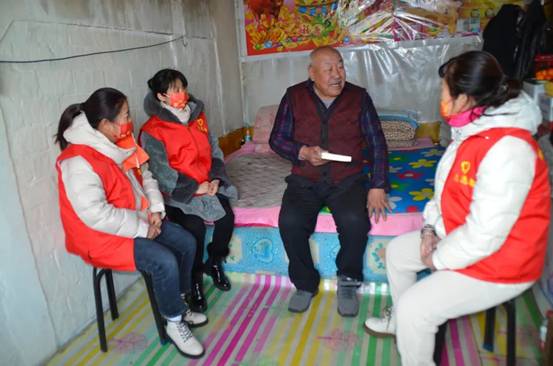 呼中林業(yè)局呼源林場(chǎng)志愿者與獨(dú)居老人聊家常(孫樹輝攝)