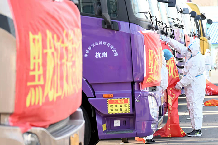 為了保障此次物資運(yùn)送順利、安全,所有車(chē)輛及人員全部實(shí)行閉環(huán)管理,途中不經(jīng)過(guò)市區(qū),安排警車(chē)引導(dǎo),運(yùn)送物資車(chē)輛原則上直接抵達(dá)吉林省外接卸點(diǎn),不與吉林省工作人員直接接觸,無(wú)接觸傳遞完成物資交接后,立即對(duì)車(chē)輛進(jìn)行全面消毒。