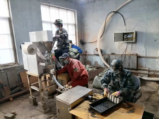 根據(jù)設(shè)備操作指南,呼中林業(yè)局中心苗圃從3月中旬便開始著手生產(chǎn)作業(yè),工作中他們采用機(jī)械與人工相結(jié)合的方式,每天加班加點(diǎn)、技術(shù)人員跟班作業(yè)。同時(shí),為加快生產(chǎn)進(jìn)度,他們還租用一臺(tái)挖掘機(jī),將凍土原料運(yùn)送到圃內(nèi)大棚,并用燒爐解凍烘干的方法,與珍珠巖肥料按一定比例混合成基制,再用機(jī)器灌裝成型,每日生產(chǎn)可達(dá)8000余個(gè)。截至目前,已完成輕基質(zhì)容器育苗杯生產(chǎn)10萬+。
